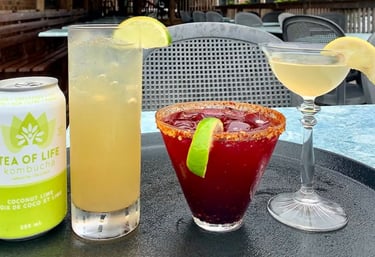 Kombucha Kolada malibu rum, coconut lime kombucha, fresh lime juice, pineapple juice
