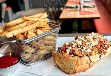Warm and cheesy, bacon, spinach, cream cheese, pistachios, served with veggies and grilled bread for dipping. (Gluten-free bread add $2)