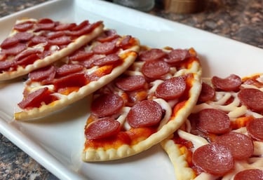 Pepperoni Pizza … Pizza sauce, pepperoni, and melted mozzarella on a flatbread.