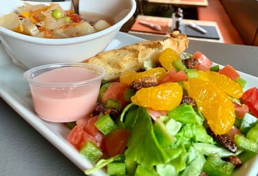 Cranberry Almond Salad $16 Greens, cucumber, tomato, onion, almonds and dried cranberries, with sweet onion dressing. (Vegan. Add $1 for gluten-free bread)